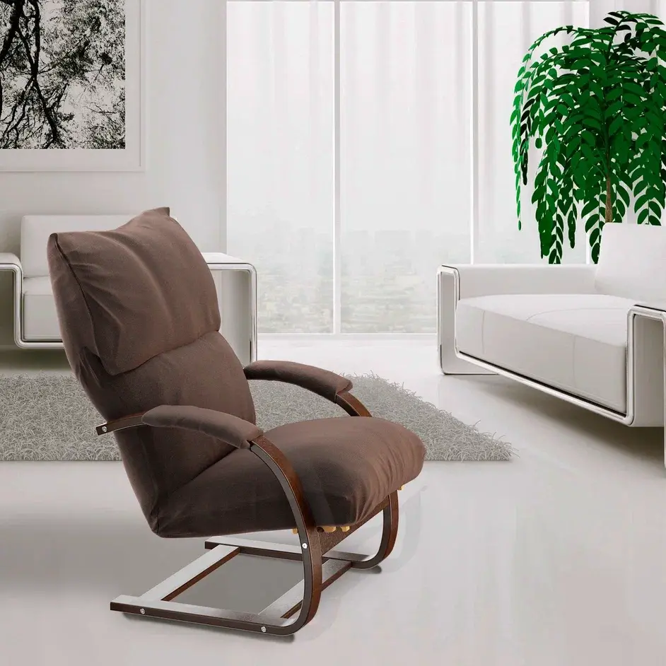 Кресло для отдыха, 3 положении спинки (гребенка), качания нет, эффект пружины, стопора нет. Высота от пола до сиденья 500 мм; угол наклона спинки 110-120-140. Высота спинки 75 см