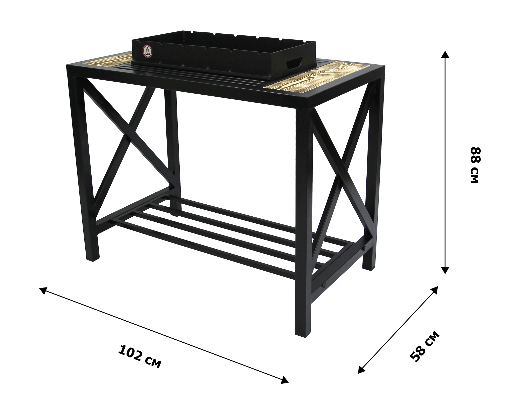 Габариты элементов (ШхГ/ДхВ) : жаровня: 60х30х15 см