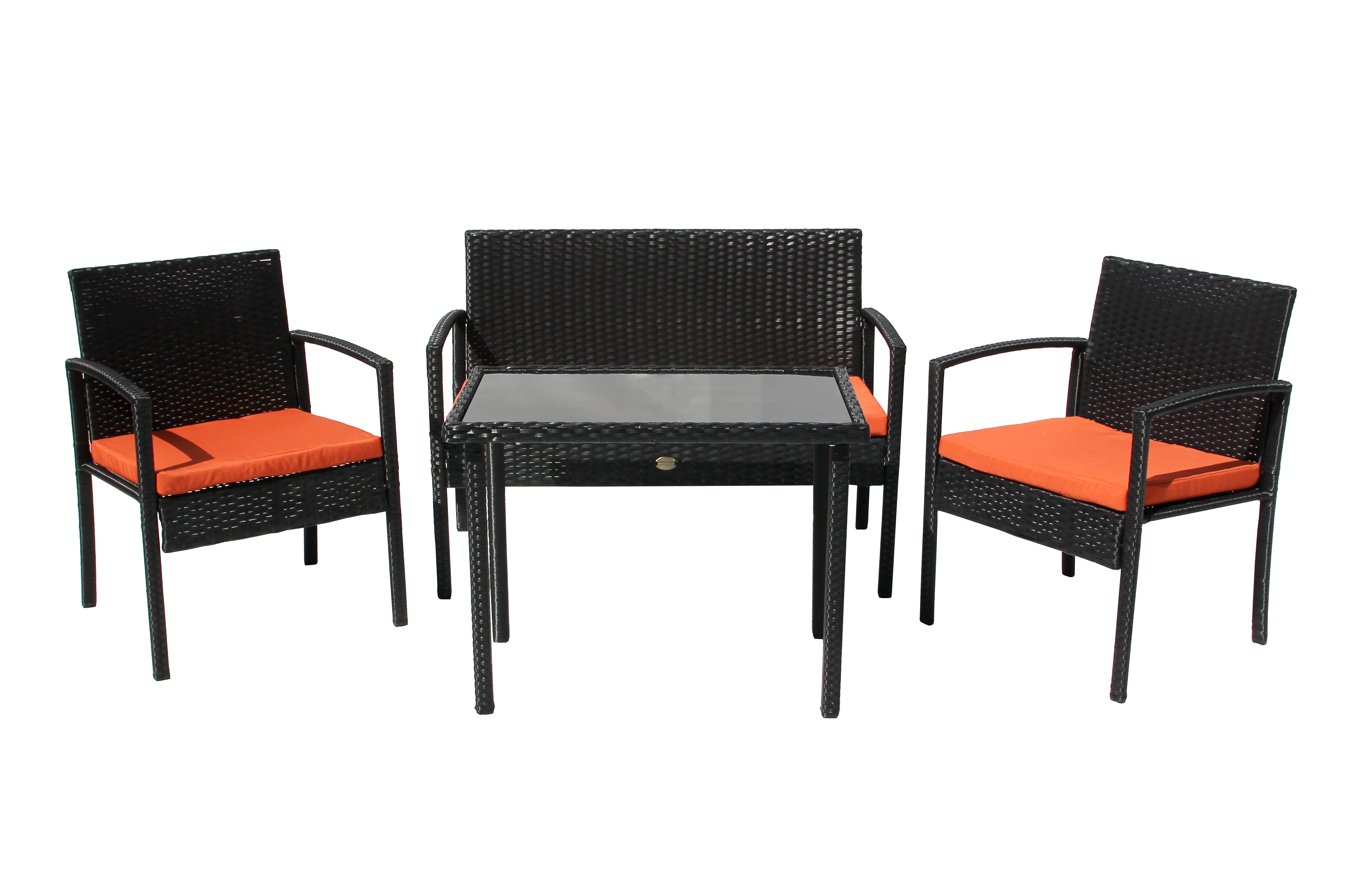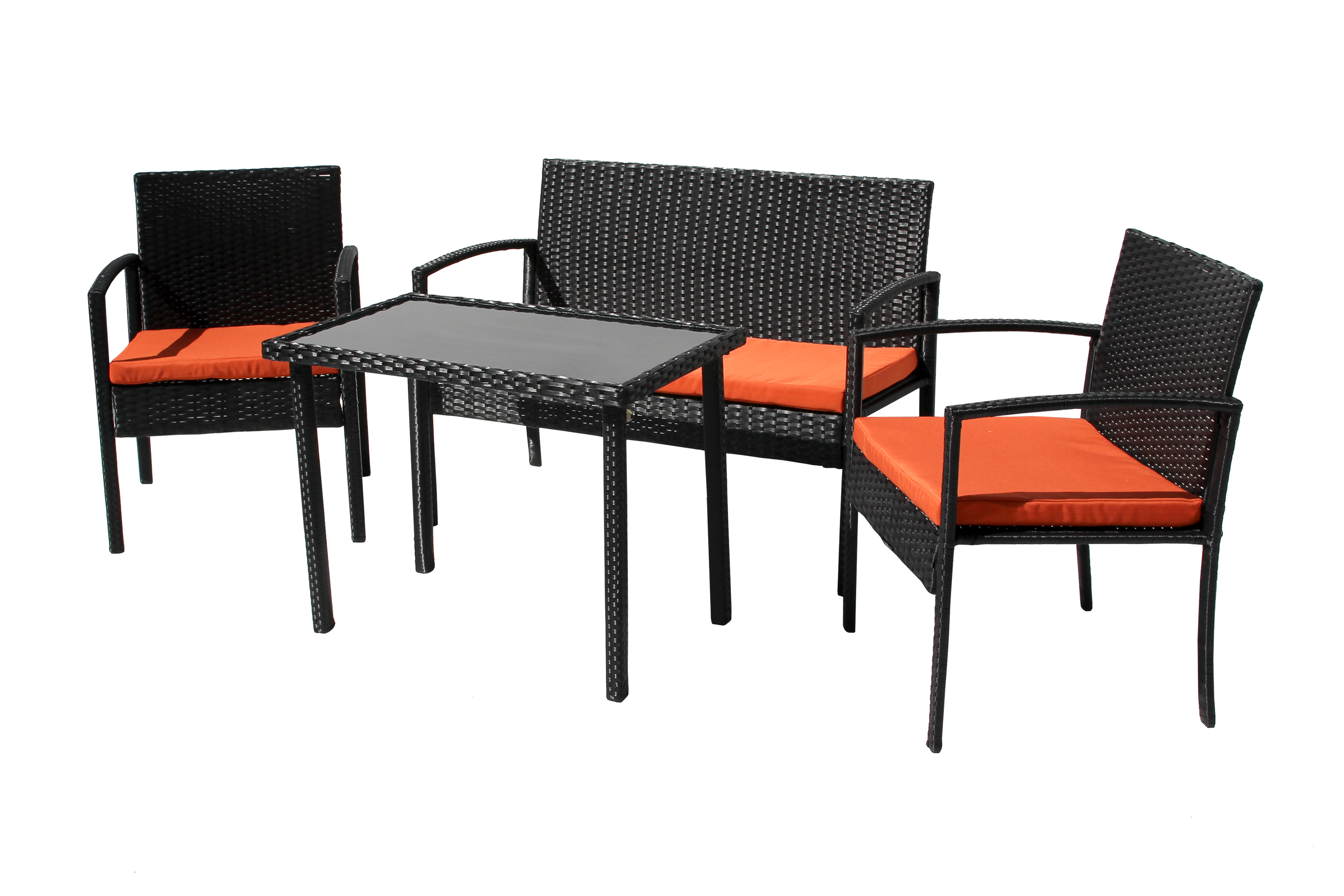 Набор «Бостон NEW» создан для тех, кто ценит в отдыхе яркие краски и динамику. Комплект включает двухместный диван 106×58×84 см, два кресла 58×59×84 см и кофейный стол 50×80×60 см. Гармония черного искусственного ротанга со стальным каркасом и оранжевыми подушками создает жизнерадостную атмосферу, наполненную теплом и энергией.