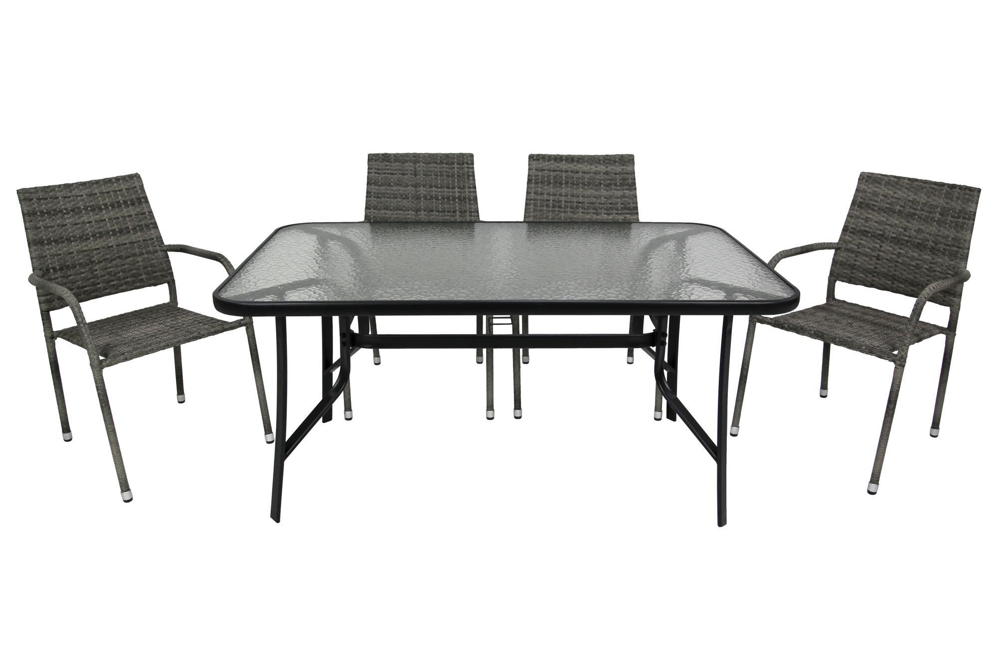 Набор «Гарда» - это гармоничное сочетание современного дизайна и практичной функциональности. Гарнитур, выполненный в стильном тандеме черного и серого, идеально впишется в пространство террасы, патио или зоны отдыха в саду. В комплект входят прочный стол со стеклянной столешницей и четыре удобных стула, создающих комфортные условия для приема гостей или семейных обедов на свежем воздухе.