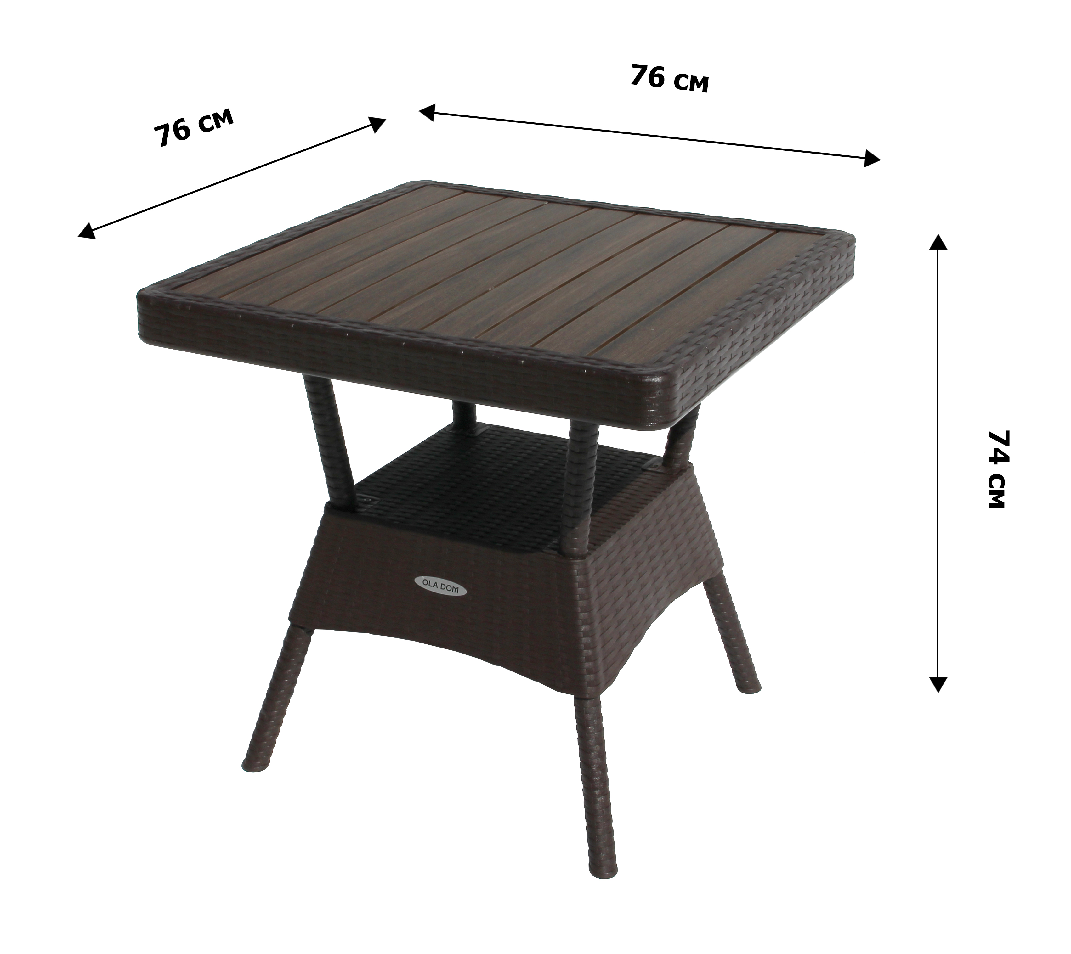 Габариты элементов (ШхГ/ДхВ) : стол: 76х76х74